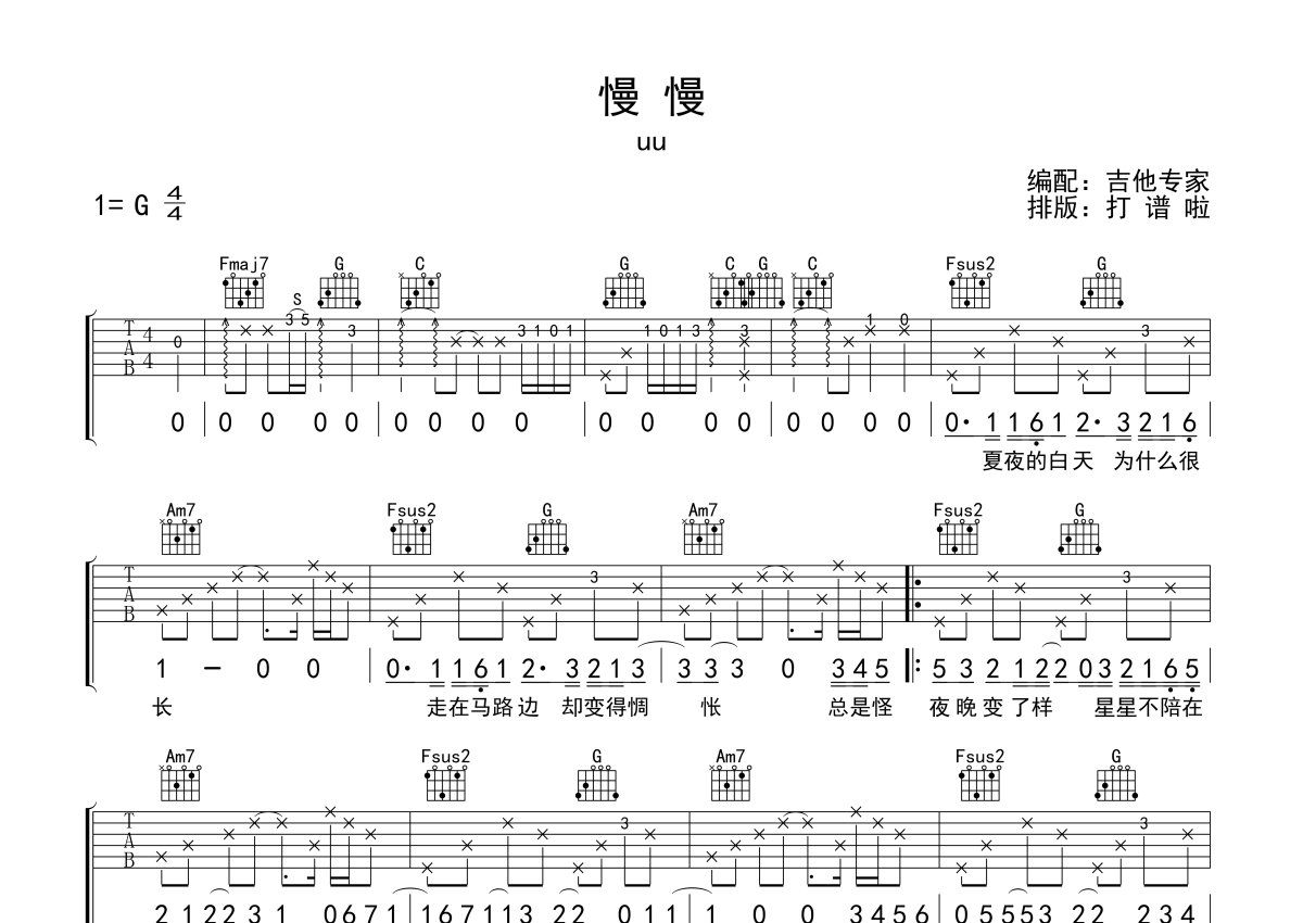 uu《慢慢》吉他谱 - G调弹唱六线谱