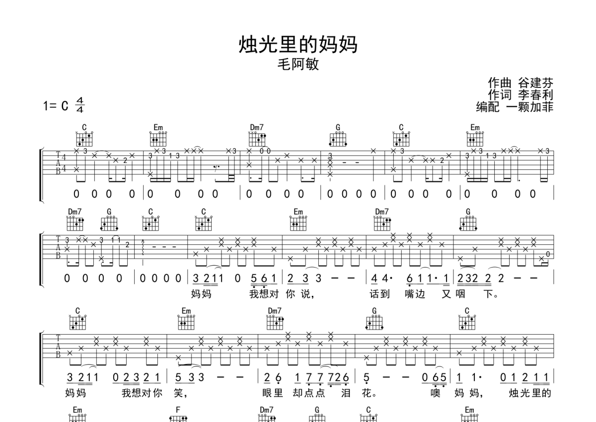 毛阿敏《烛光里的妈妈》吉他谱 - C调弹唱六线谱