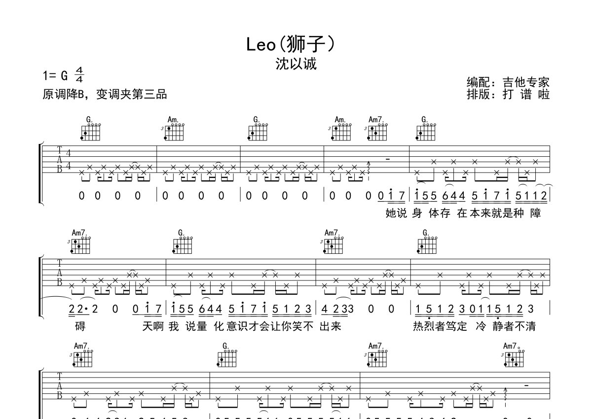 沈以诚《Leo(狮子)》吉他谱 - G调弹唱六线谱