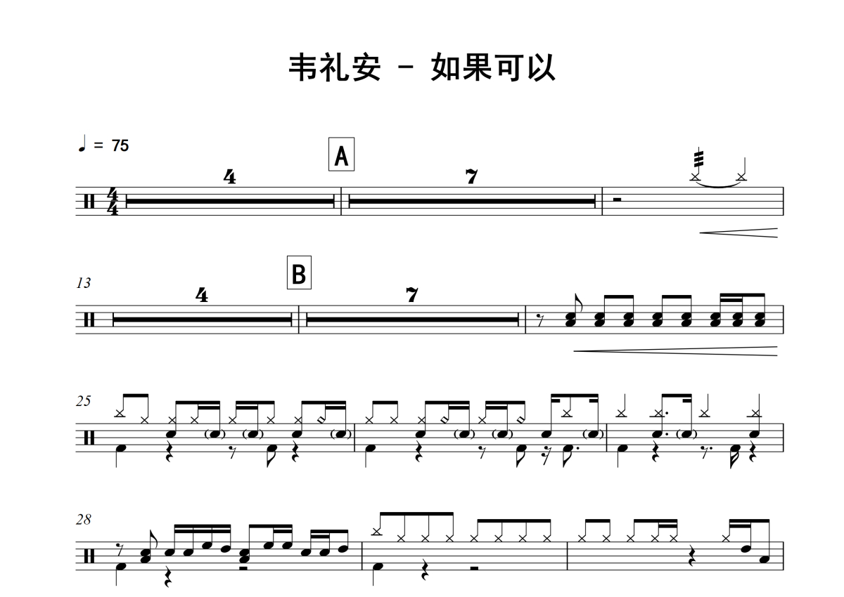如果可以架子鼓谱 - 韦礼安演唱