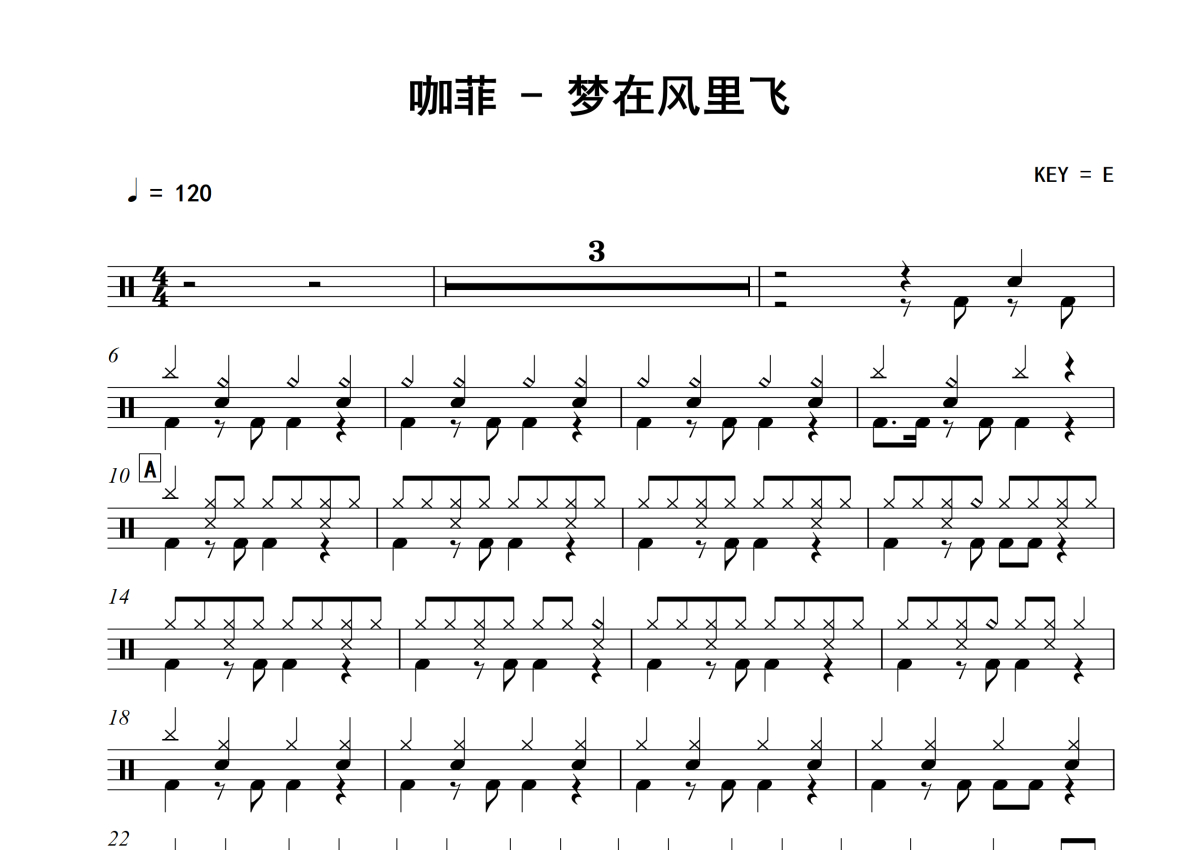 咖菲《梦在风里飞》架子鼓谱