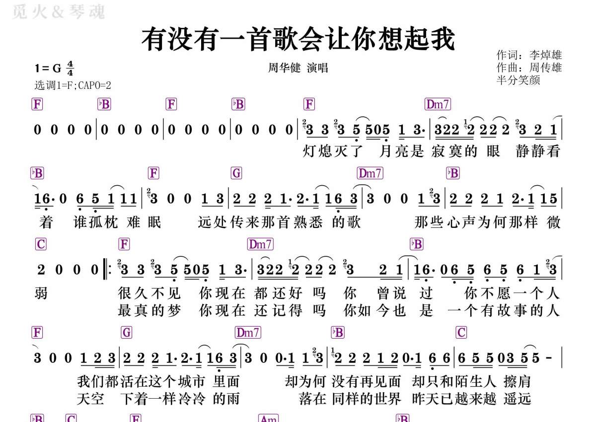 周华健《有没有一首歌会让你想起我》简谱 - 和弦谱
