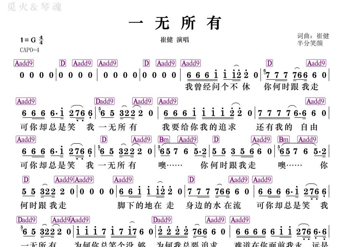 《一无所有》是崔健演唱的一首歌曲,和弦谱,拍号为4/4拍,这份简谱共有一张高清图谱,图谱由 @静沐暖阳 编配上传。