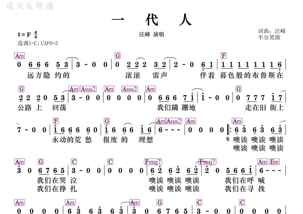 汪峰《一代人》简谱 - 和弦谱