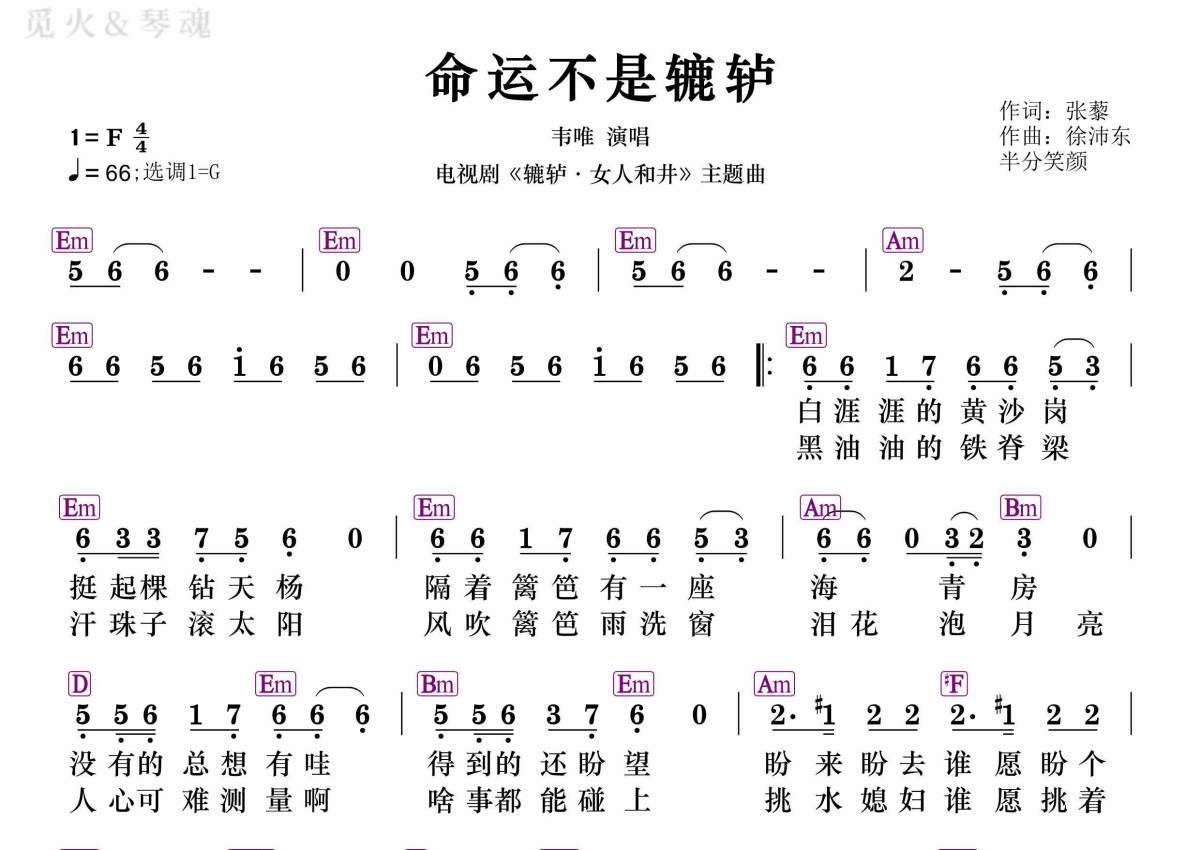 命运不是辘轳简谱 - 韦唯演唱 - 和弦谱