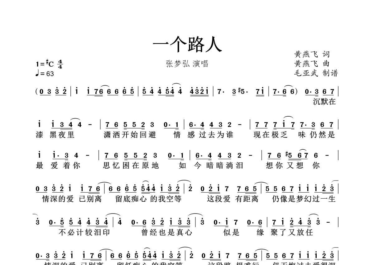 张梦弘《一个路人》简谱