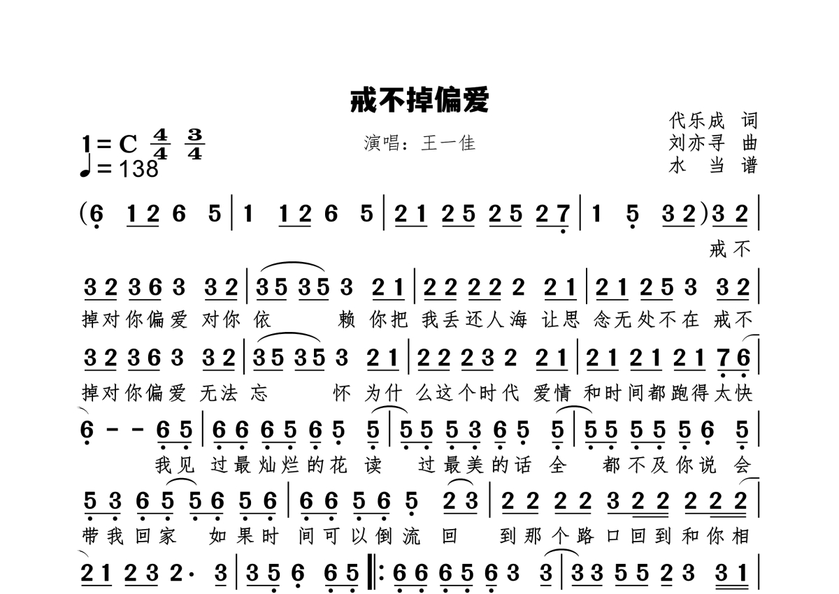 戒不掉偏爱简谱 - 王一佳演唱