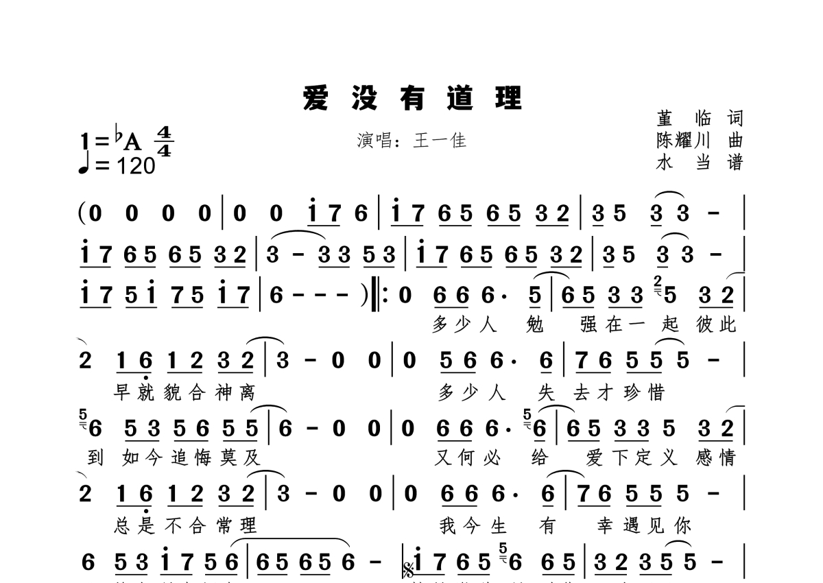爱没有道理简谱 - 王一佳演唱
