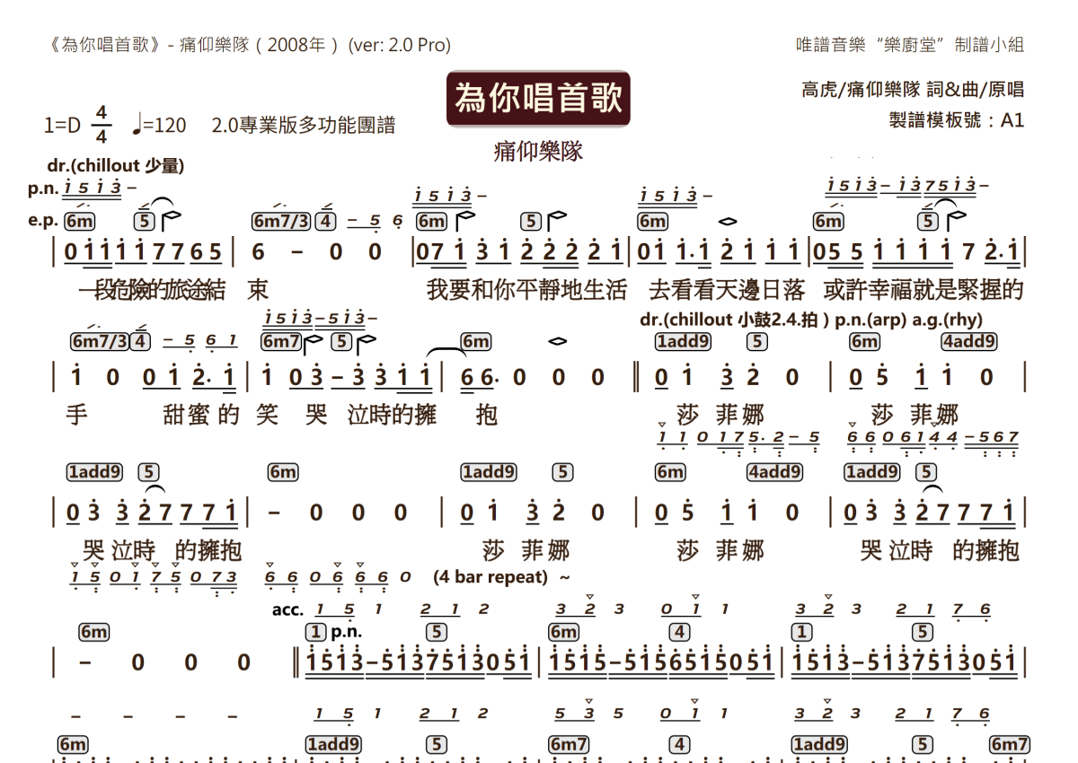 痛仰乐队《为你唱首歌》乐队总谱 - 2.0专业版多功能团谱