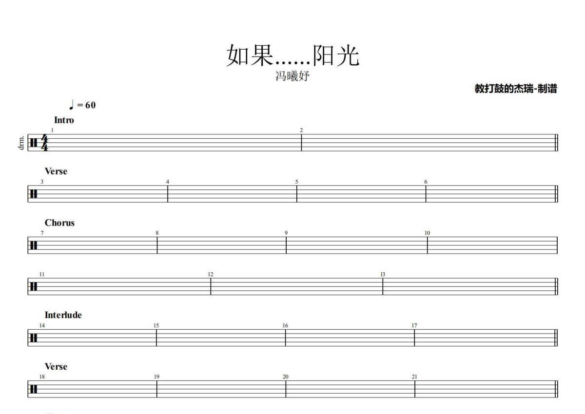 冯曦妤《如果......阳光》架子鼓谱