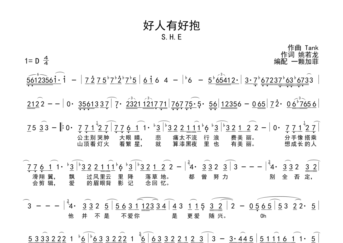 《好人有好报》是SHE演唱的一首歌曲,这份简谱共有两张高清图谱,图谱由 @一颗加菲 编配上传。