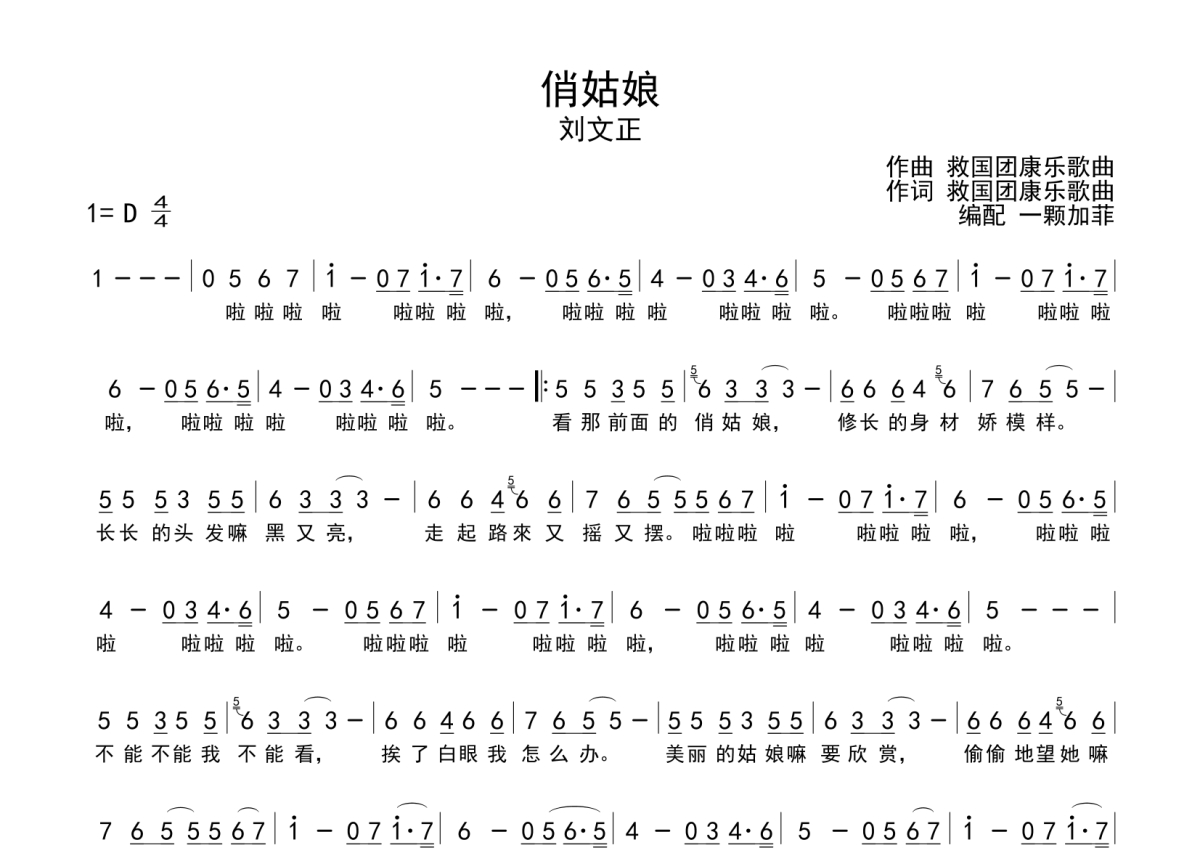 《俏姑娘》是刘文正演唱的一首歌曲,这份简谱共有一张高清图谱,图谱由 @一颗加菲 编配上传。