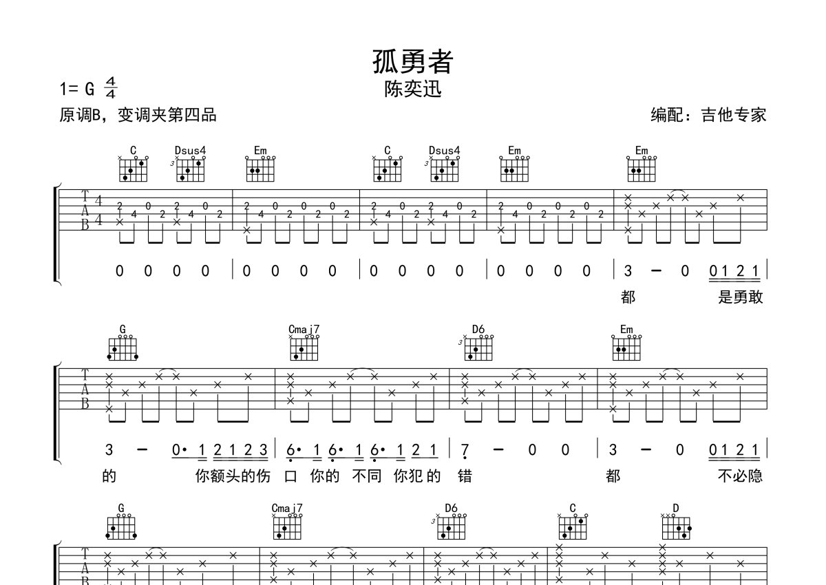 陈奕迅《孤勇者》吉他谱 - G调弹唱六线谱