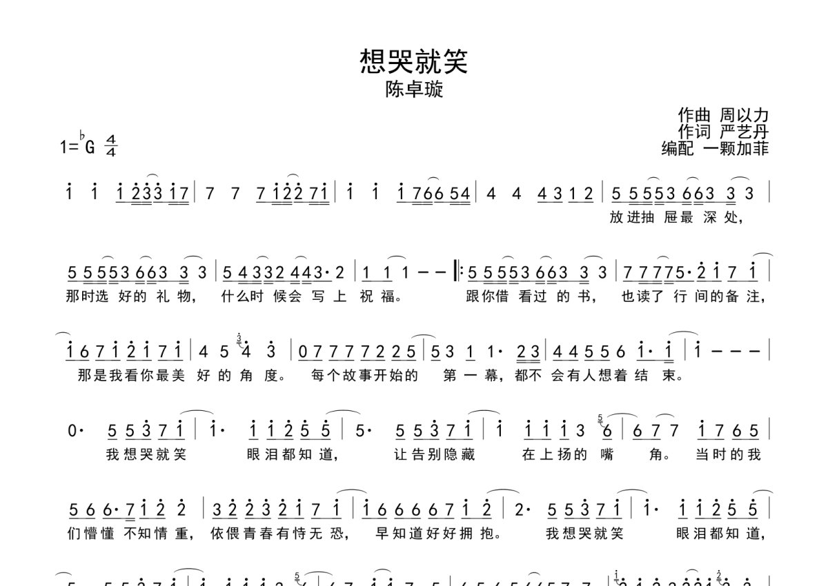 想哭就笑简谱 - 陈卓璇演唱