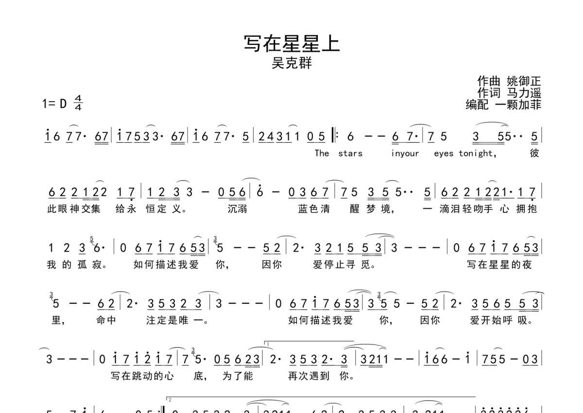 写在星星上简谱 - 吴克群演唱
