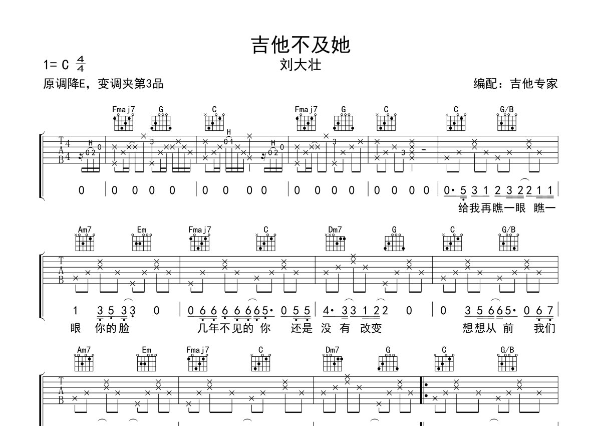 刘大壮《吉他不及她》吉他谱 - C调弹唱六线谱