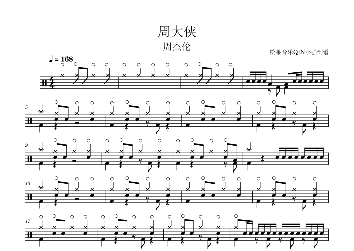 周杰伦、杜国璋《周大侠》架子鼓谱
