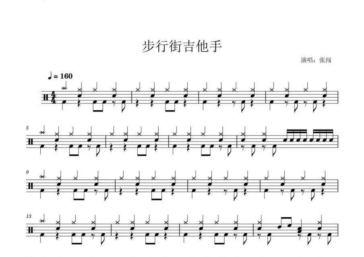 张闯《步行街的吉他手》架子鼓谱