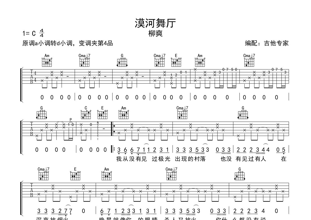柳爽《漠河舞厅》吉他谱 - C调弹唱六线谱