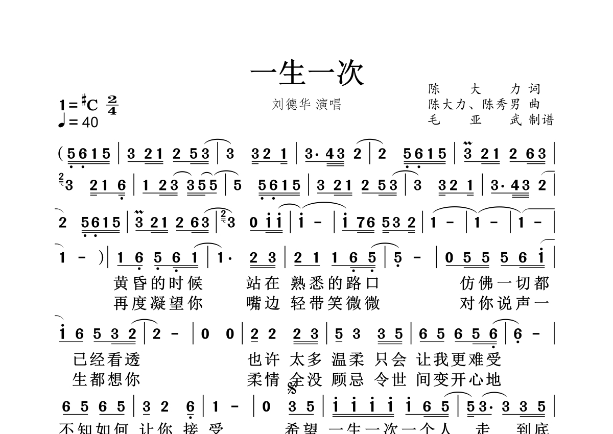 一生一次简谱 - 刘德华演唱