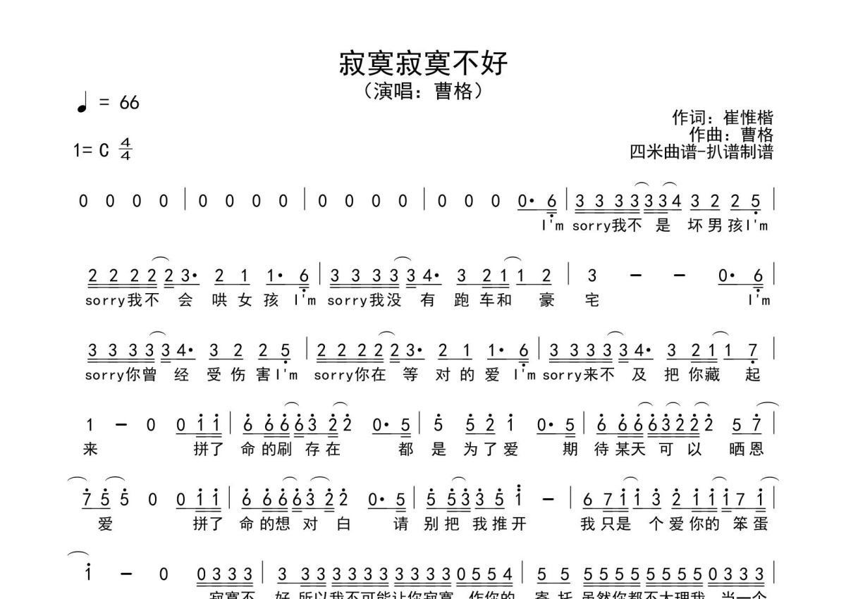 寂寞寂寞不好简谱 - 曹格演唱