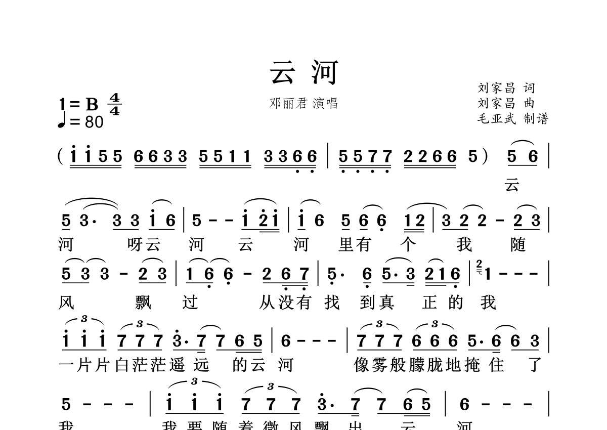 云河简谱 - 邓丽君演唱