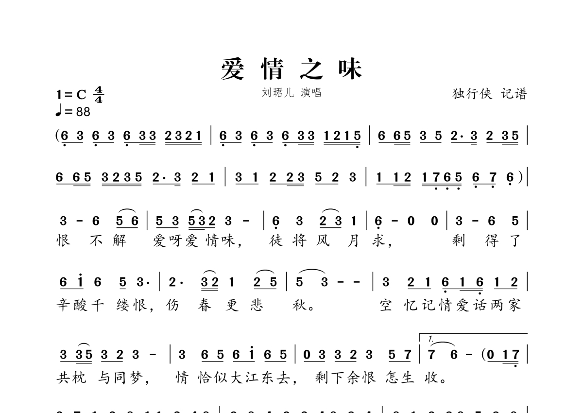 《爱情之味》是刘珺儿演唱的一首歌曲,这份简谱共有一张高清图谱,图谱由 @独行侠 编配上传。
