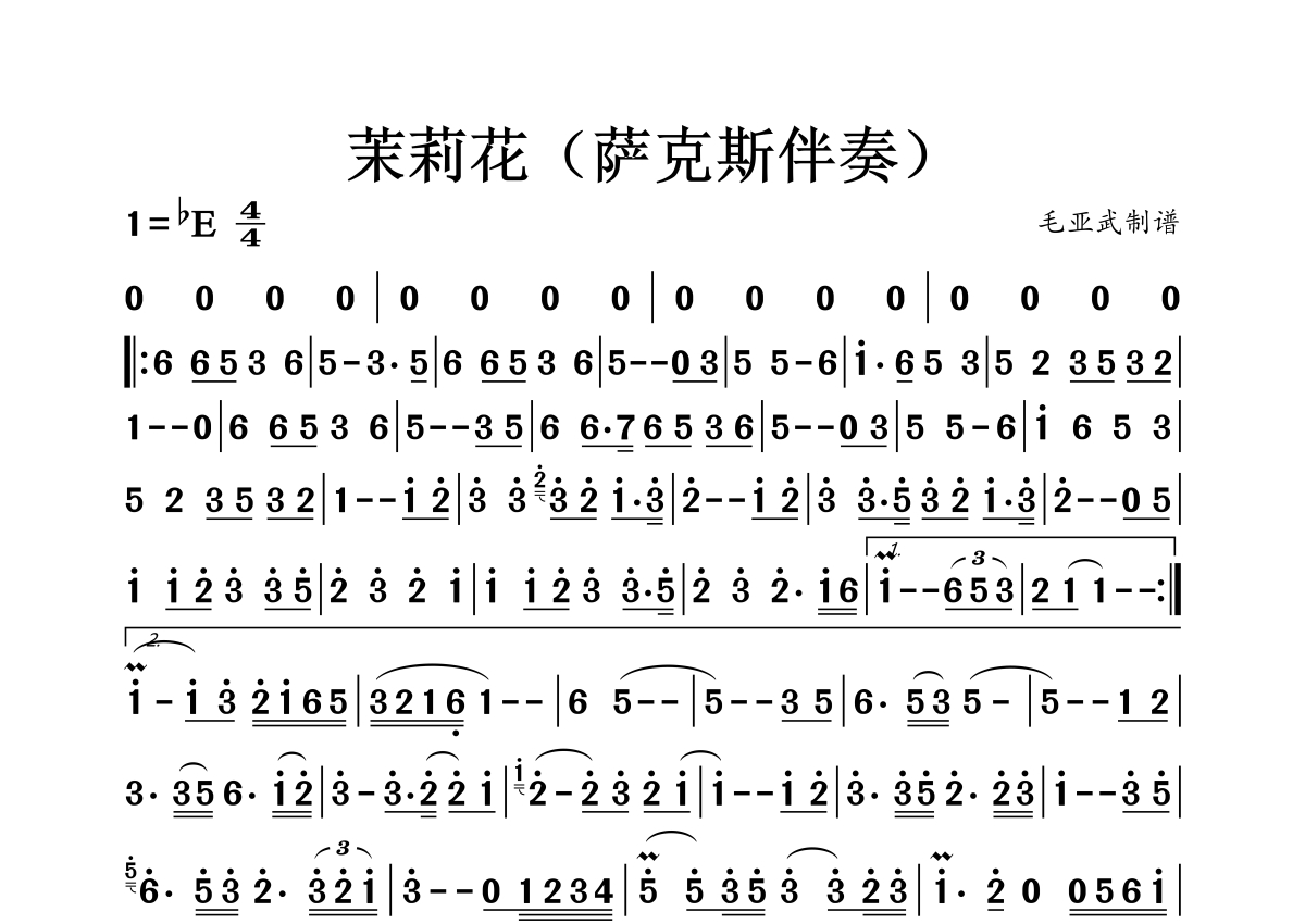 茉莉花(萨克斯伴奏)简谱 - 萨克斯伴奏演唱