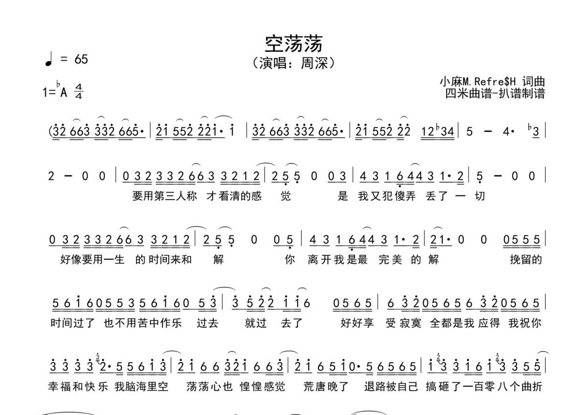 空荡荡简谱 - 周深演唱