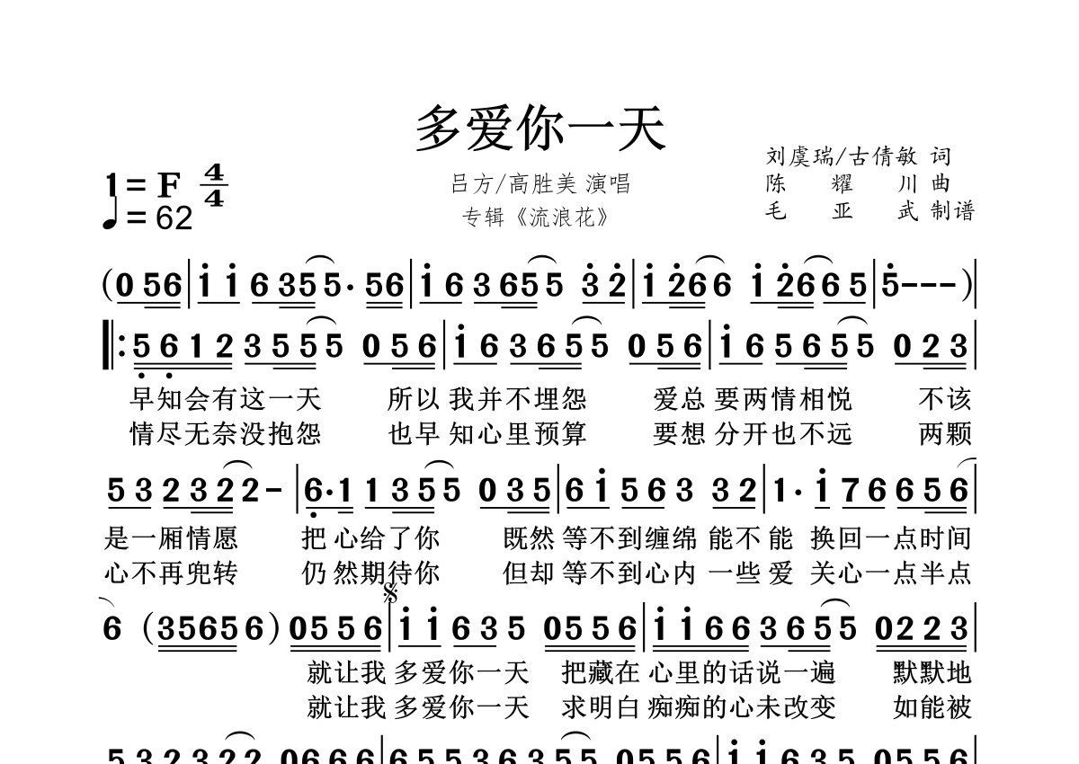 多爱你一天简谱 - 吕方/高胜美演唱