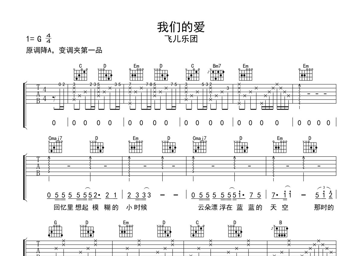 飞儿乐团《我们的爱》吉他谱 - G调弹唱六线谱