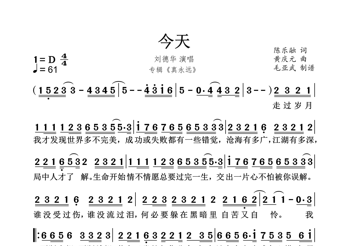 《今天》是刘德华演唱的一首歌曲,这份简谱共有一张高清图谱,图谱由 @秋天的童话 编配上传。