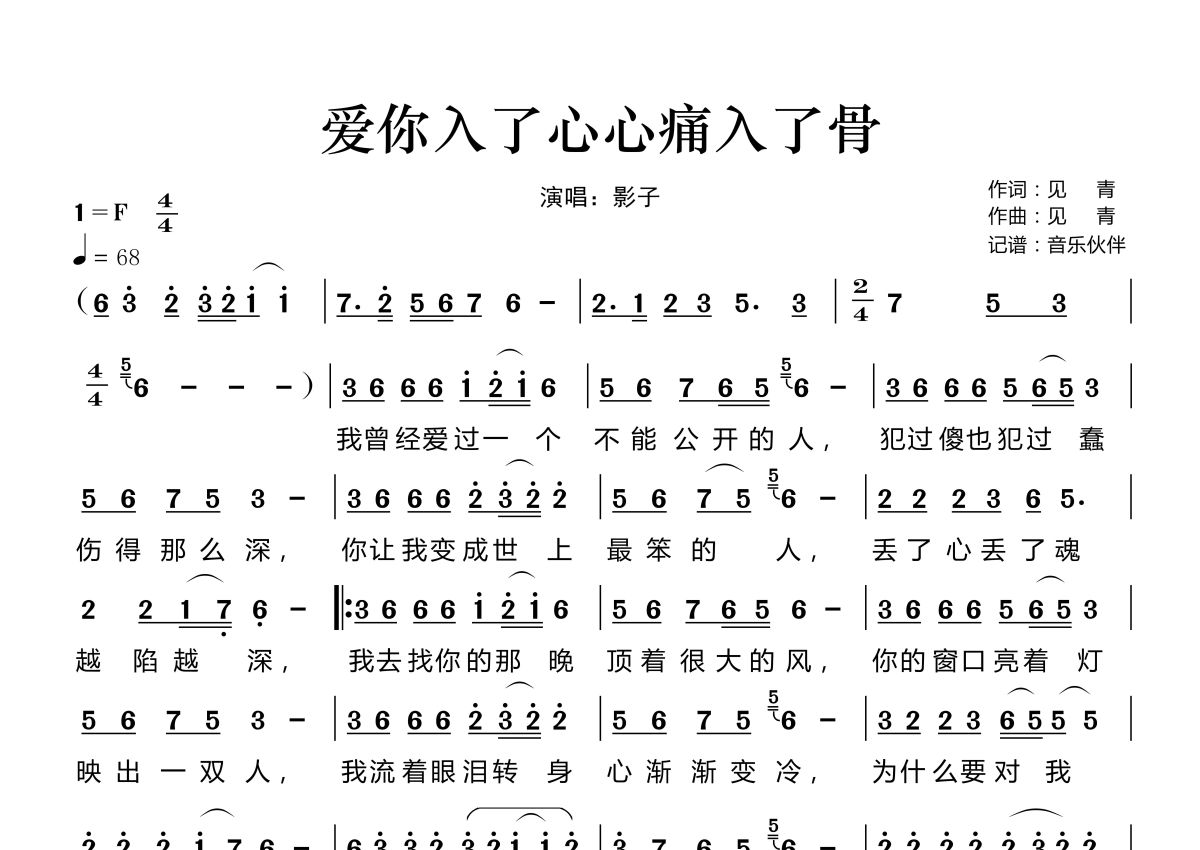 爱你入了心心痛入了骨简谱 - 影子演唱
