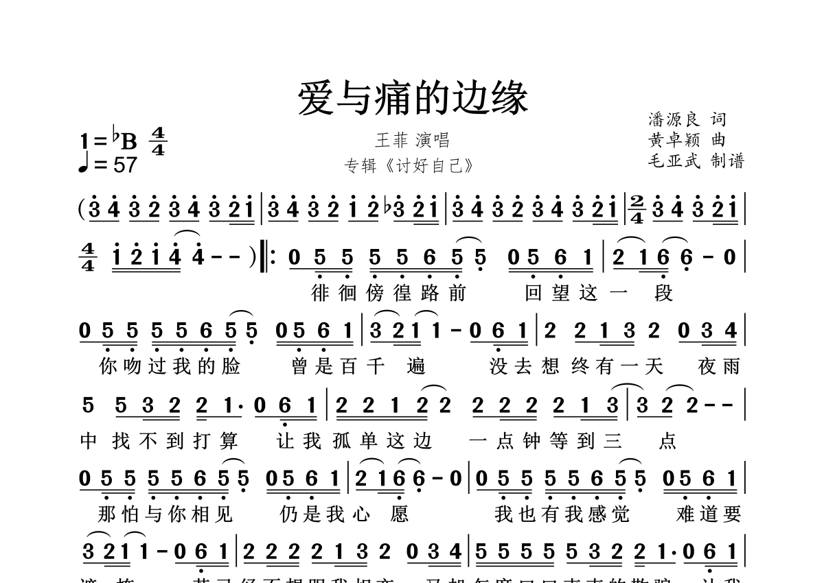 爱与痛的边缘简谱 - 王菲演唱
