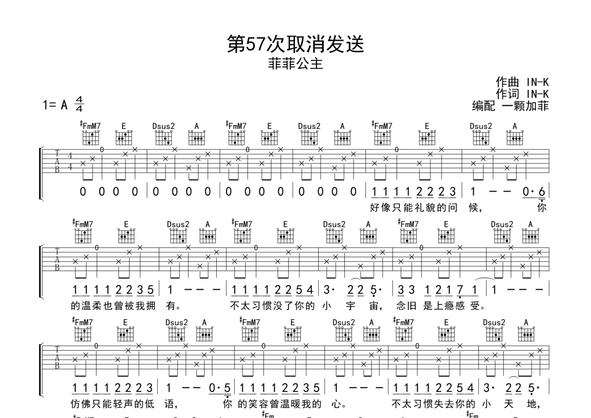 菲菲公主《第57次取消发送》吉他谱 - A调弹唱六线谱