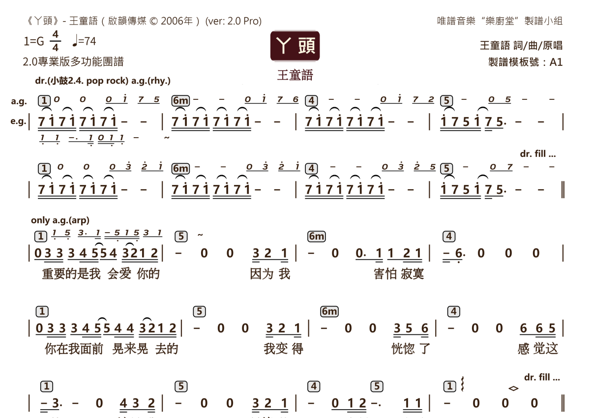 王童语《丫头》乐队总谱 - 2.0版多功能团谱