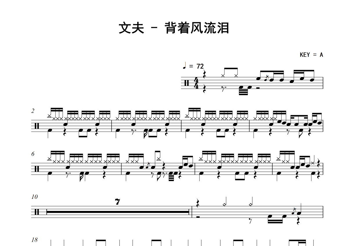 《背着风流泪》是文夫演唱的一首歌曲,拍号为4/4拍,歌曲速度为每分钟72拍,这份架子鼓谱共有两张高清图谱,图谱由 @老虎不说谎 编配上传,图谱使用五线谱编配,使用这份背着风流泪架子鼓谱,你将能够轻松地敲打出这首文夫的背着风流泪,快来尝试吧。