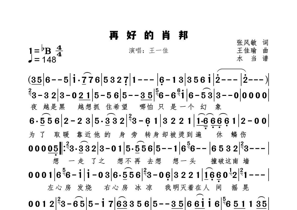 《再好的肖邦》是王一佳演唱的一首歌曲,拍号为4/4拍,歌曲速度为每分钟148拍,这份简谱共有一张高清图谱,图谱由 @水当 编配上传。