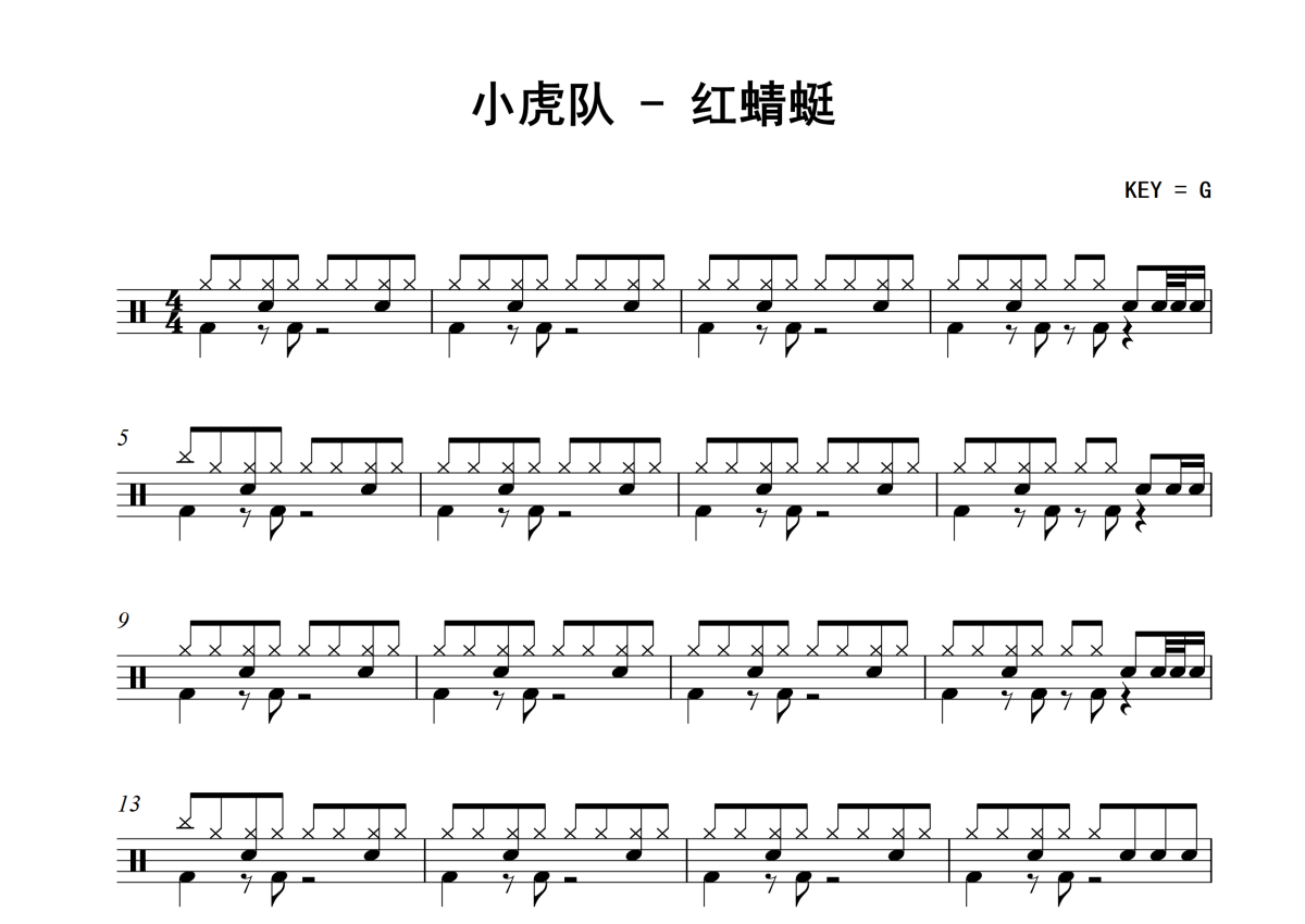 红蜻蜓架子鼓谱 - 小虎队演唱