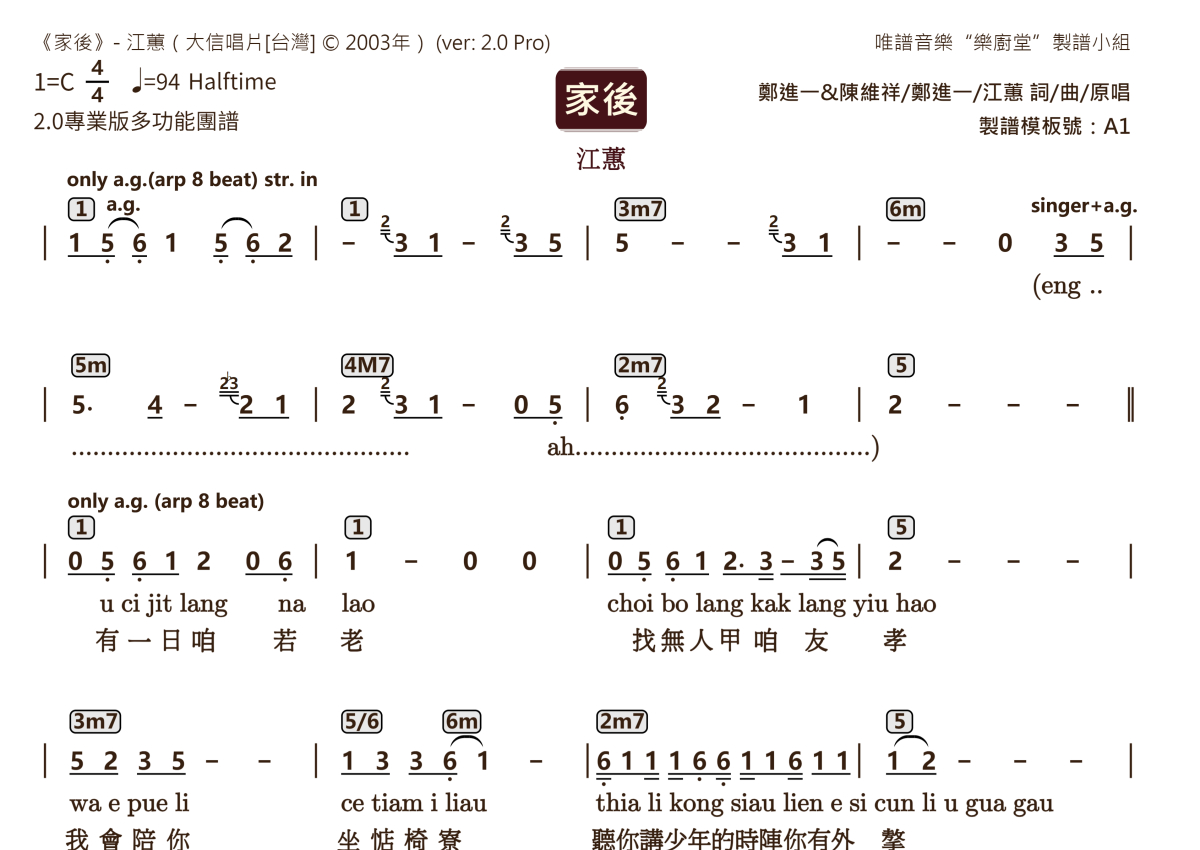 江蕙《家后(台语)》乐队总谱 - 2.0版多功能团谱