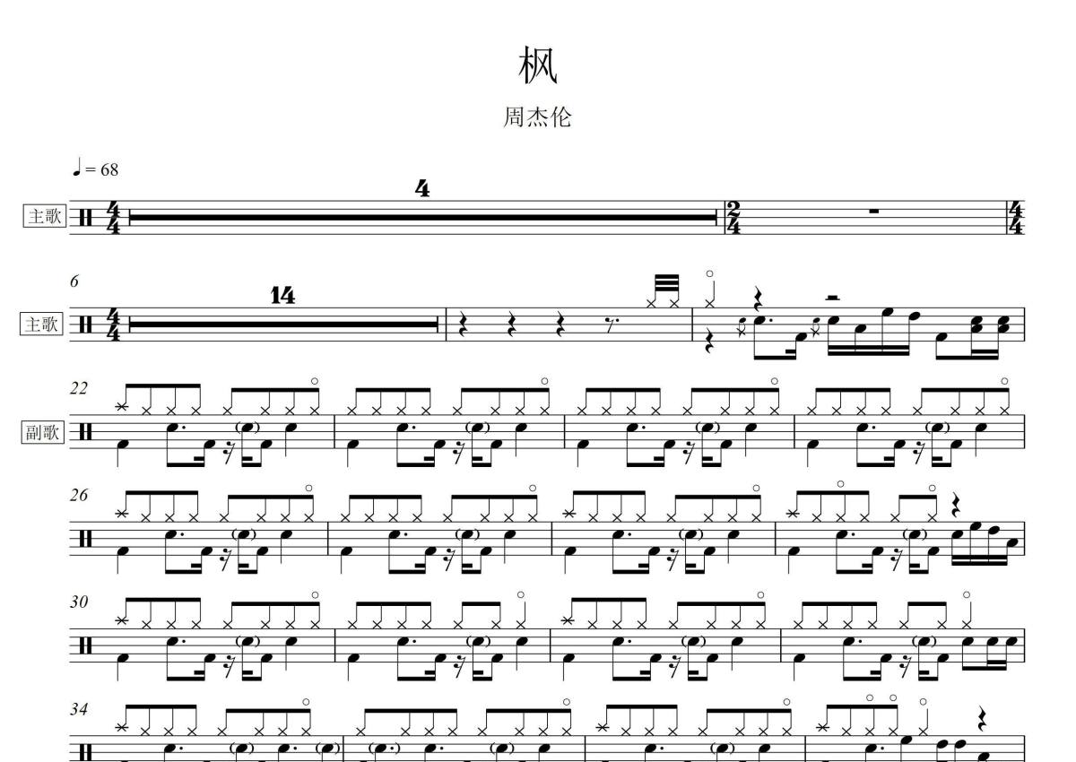 枫架子鼓谱 - 周杰伦演唱