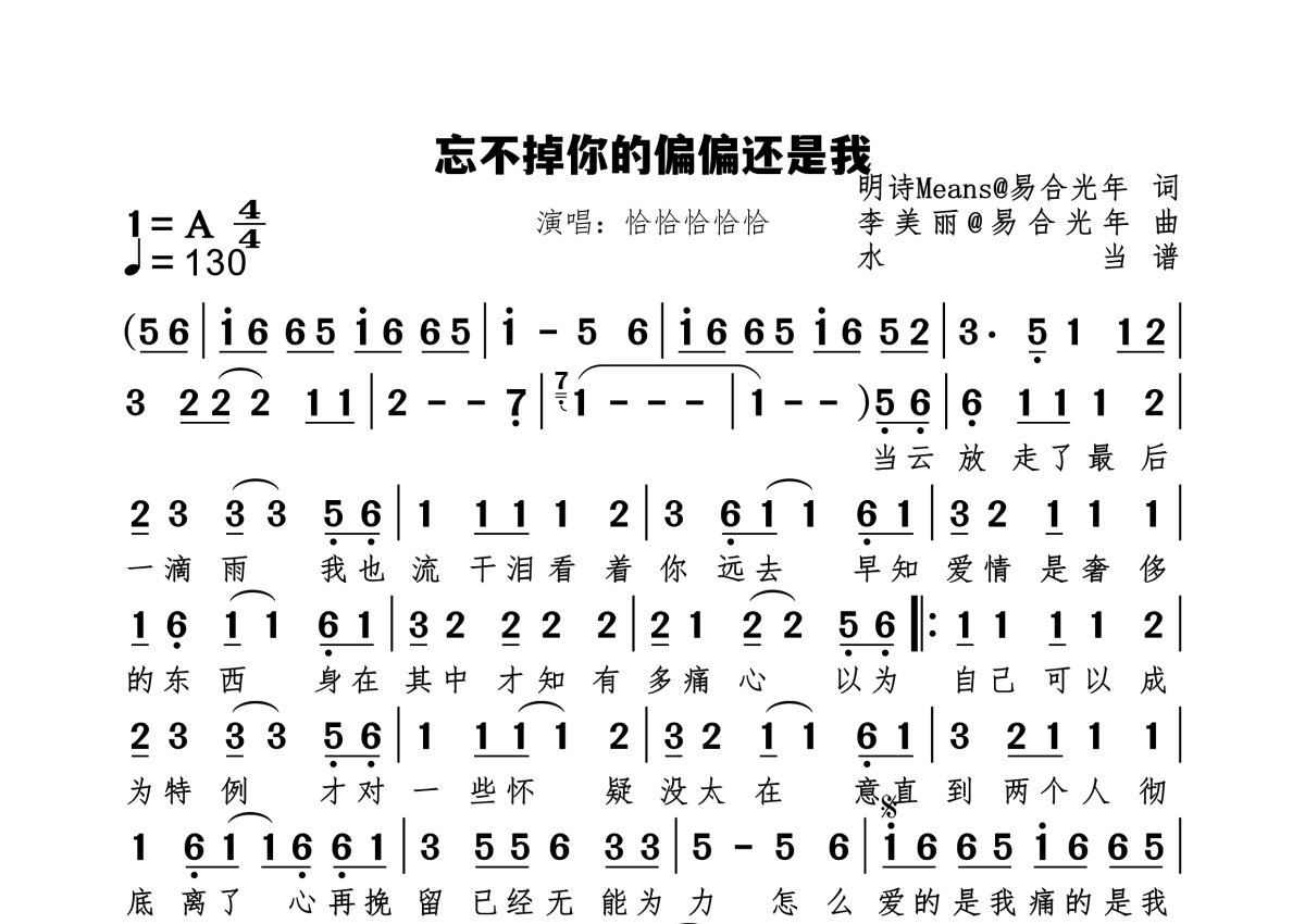 忘不掉你的偏偏还是我简谱 - 恰恰恰恰恰演唱