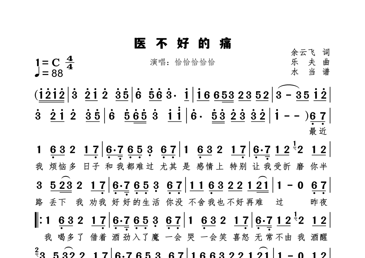 医不好的痛简谱 - 恰恰恰恰恰演唱