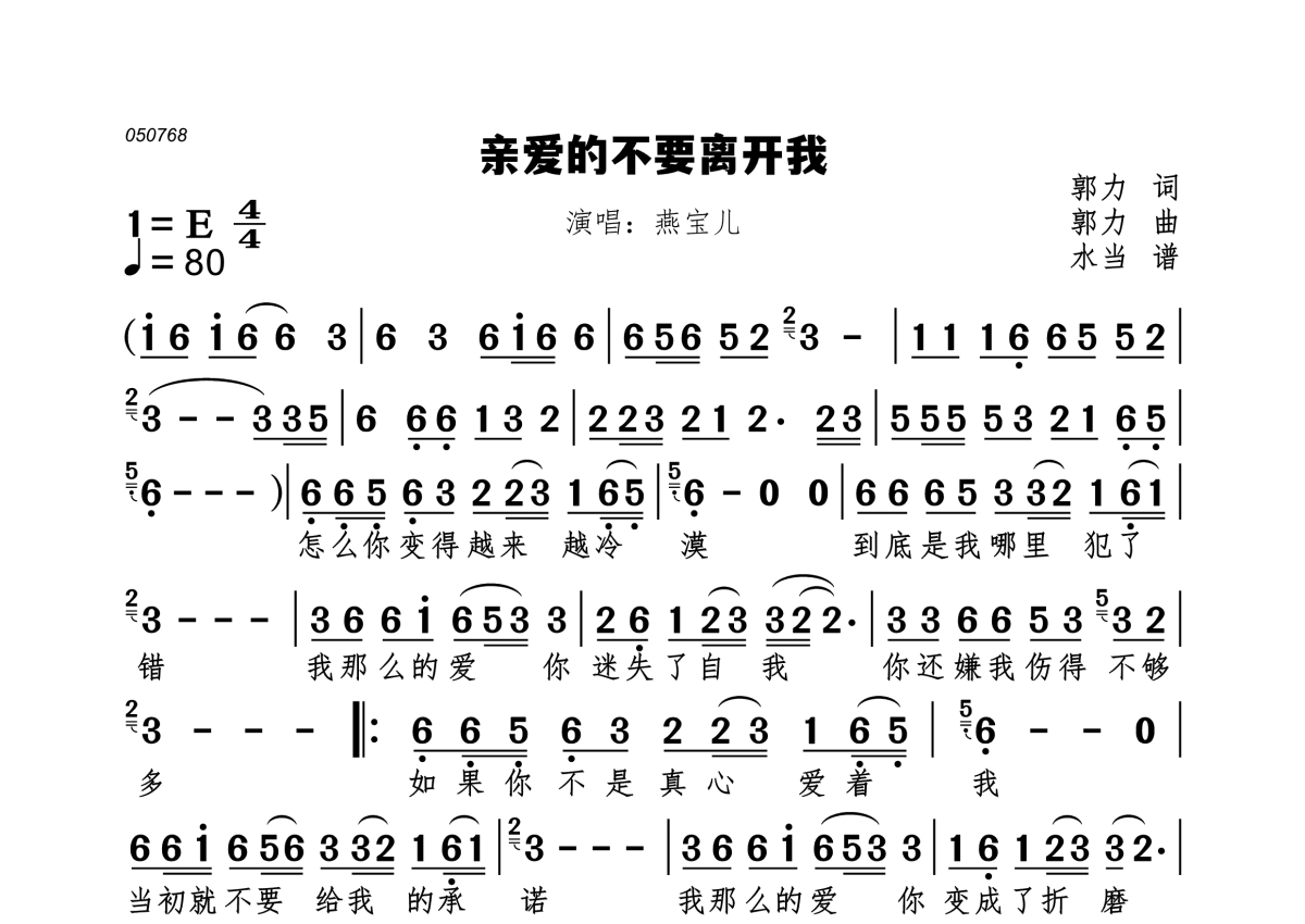 亲爱的不要离开我简谱 - 燕宝儿演唱