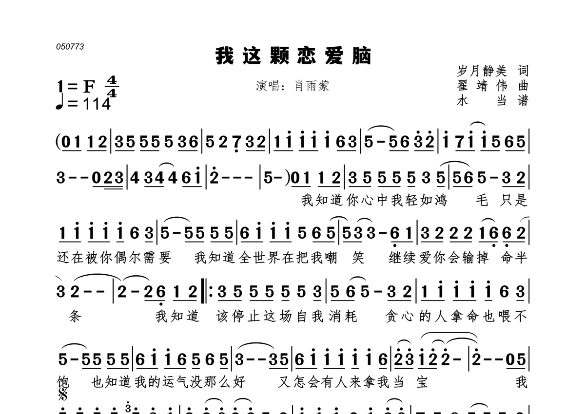 我这颗恋爱脑简谱 - 肖雨蒙演唱