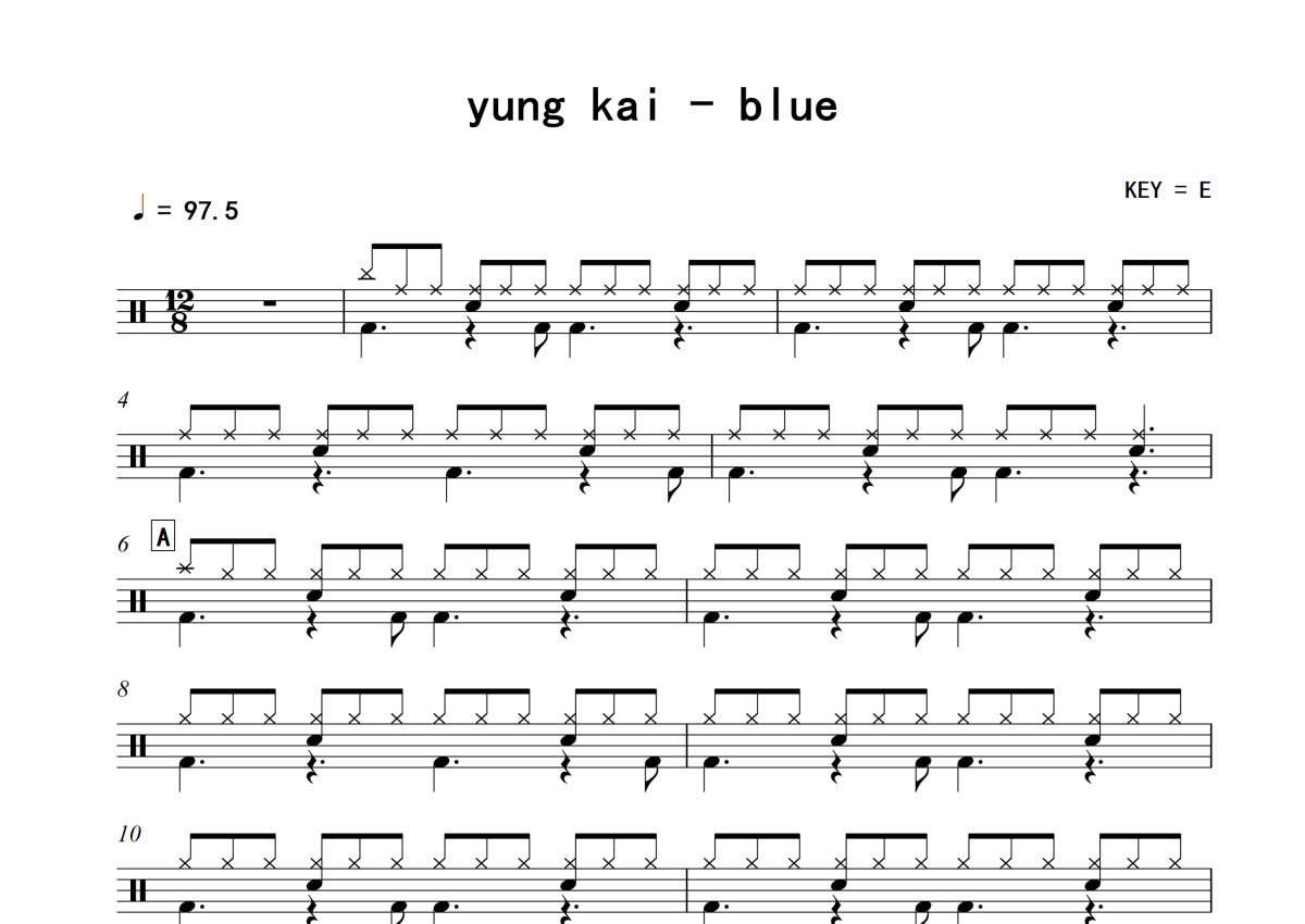 yung kai《blue》架子鼓谱
