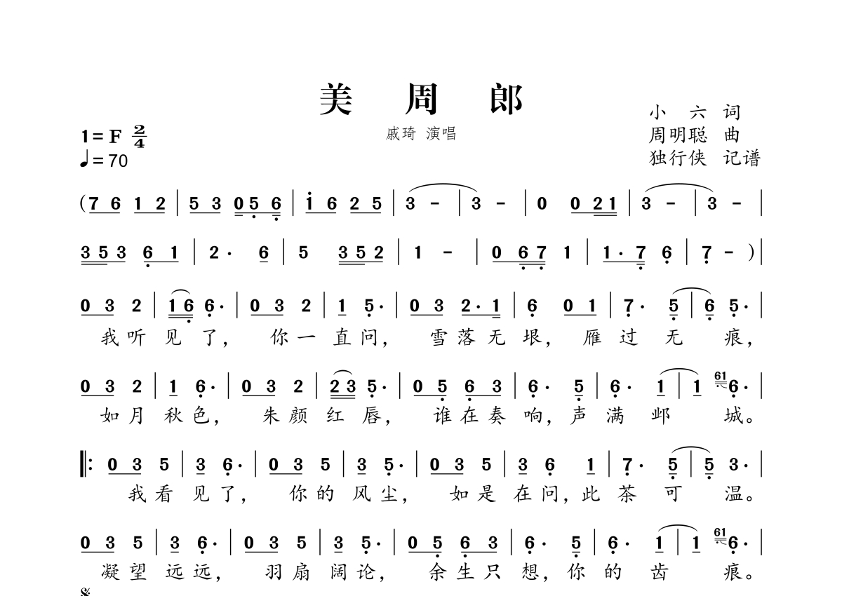 美周郎简谱 - 戚琦演唱