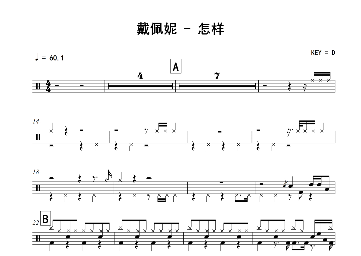 戴佩妮《怎样》架子鼓谱