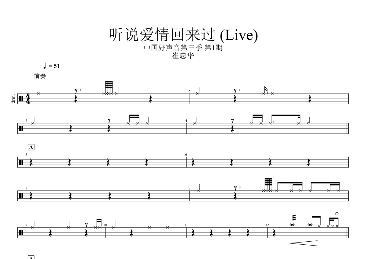 崔忠华《听说爱情回来过 (Live)》架子鼓谱