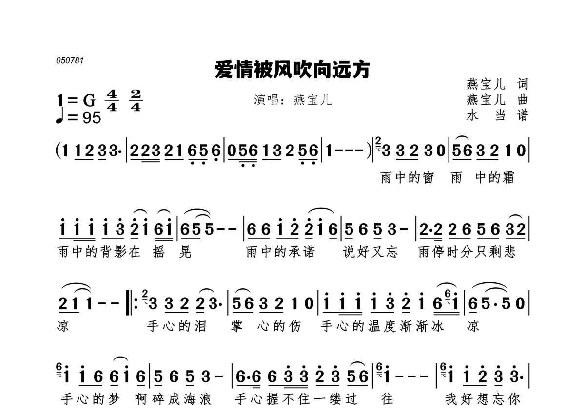 爱情被风吹向远方简谱 - 燕宝儿演唱